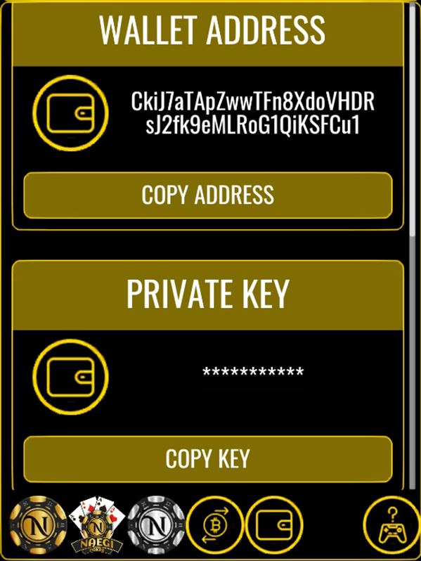NAEGI POKER made it simple to instantly deposit and withdraw your funds via in-app wallet on Solana Network.