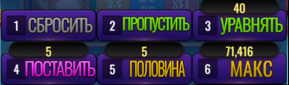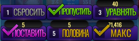 · ПОЛОВИНА : Сделайте ставку в размере 50% от общего банка. · МАКС(ВА-БАНК) : Ставьте все фишки