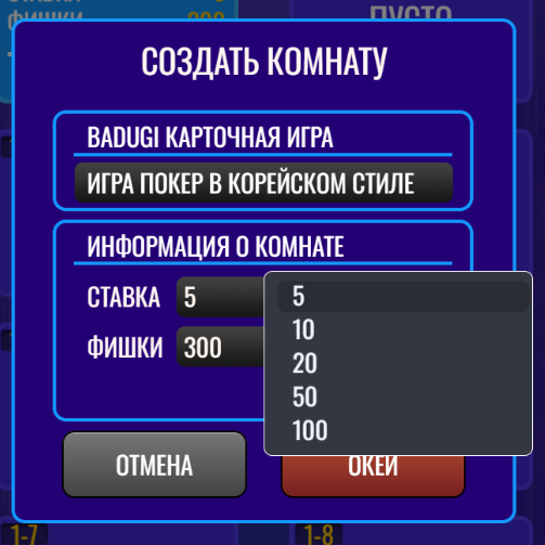 Существует 5 типов стейк-румов. ※ Минимальное количество фишек кратно СТАВКА каждого рума x60.