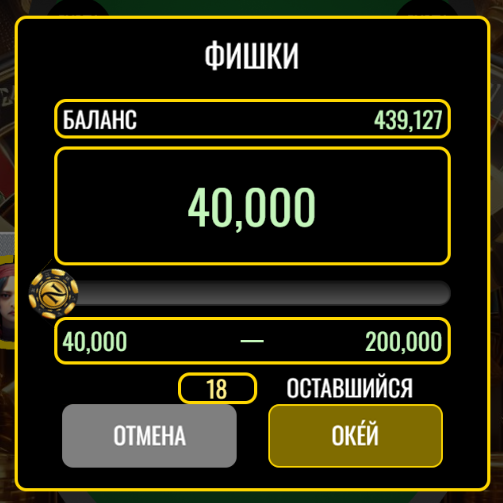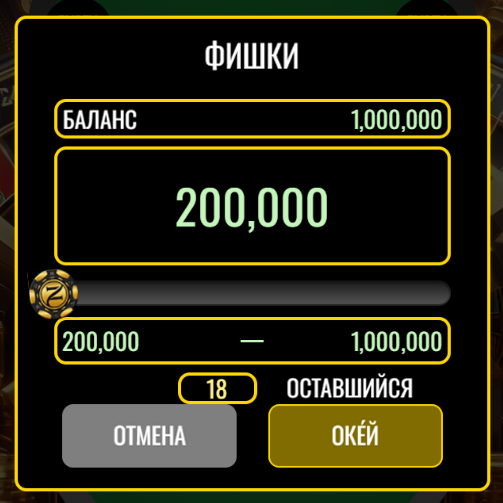 · 5K / 10K : 200,000 - 1,000,000 ФИШКИ