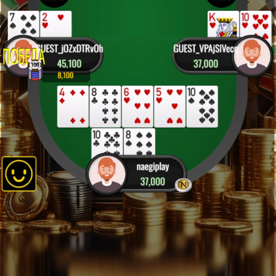 NAEGI ПОКЕР - это игра с 52 картами, в которой игроки делают ставки друг против друга и полагаются в игре на свою руку, стратегию и удачу.