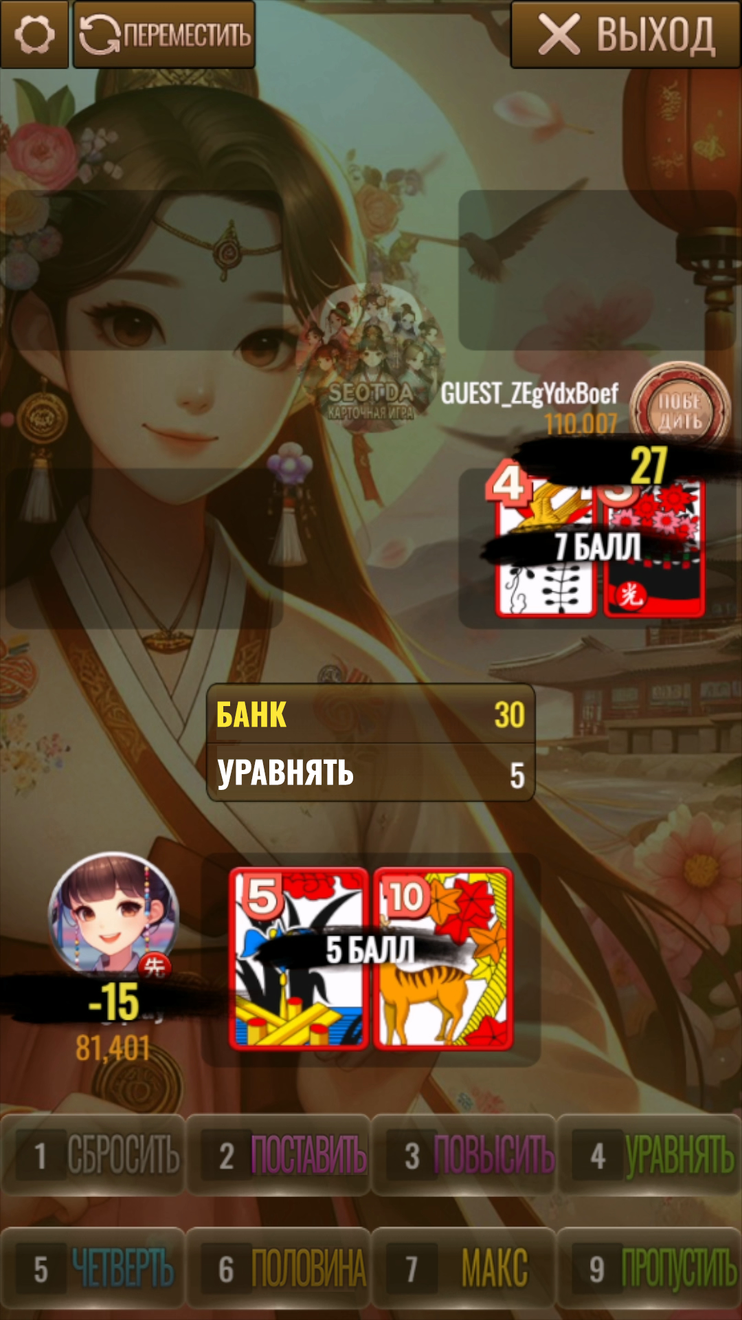SEOTDA КАРТОЧНАЯ ИГРА - это по сути игра, основанный на анте. ※ Анте: Перед игрой все игроки вносят номинальную сумму анте.