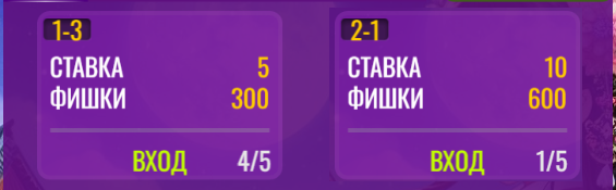 ※ Минимальное количество фишек кратно СТАВКА каждого рума x60.