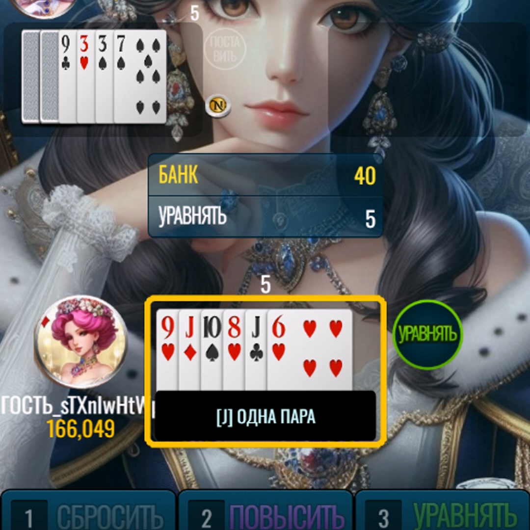 ОДНА ПАРА : Из 5 карт 2 карты имеют одинаковый номер. (J, Одна пара)