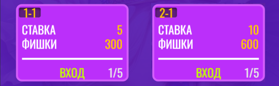 ※ Минимальное количество фишек кратно СТАВКА каждого рума x60.