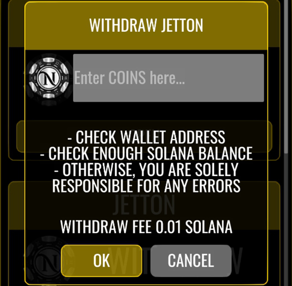 NAEGI POKER with SOLANA allows deposits and withdrawals using our own utility tokens