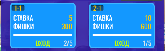 ※ Минимальное количество фишек кратно СТАВКА каждого рума x60.
