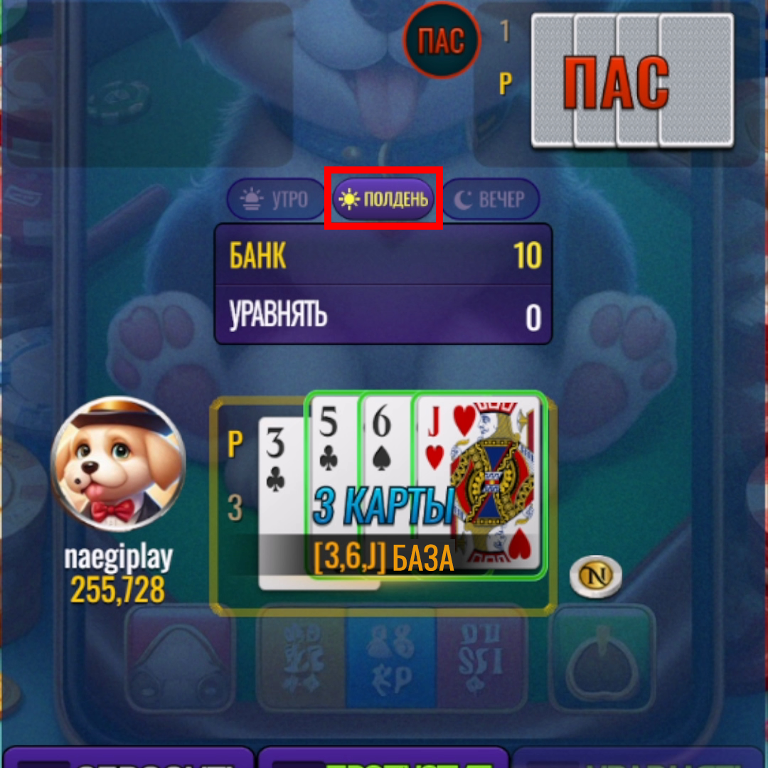 · ПАС : Если игрок доволен своей рукой, он может остановиться и ПАС. (не брать карты)
