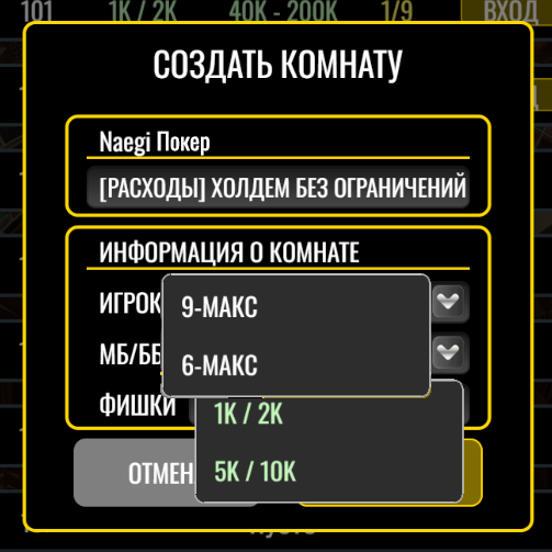 ※ Минимальное количество фишек кратно СТАВКА BB каждого рума x20. Максимальное количество фишек кратно СТАВКА BB каждого рума x100.