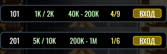 · 5K / 10K : 200,000 - 1,000,000 ФИШКИ