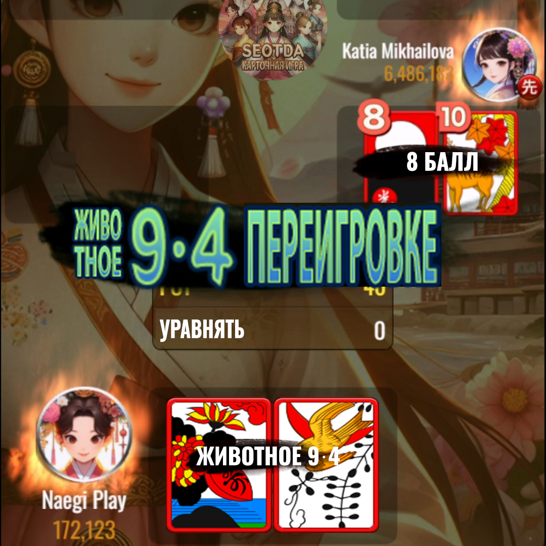 ЖИВОТНОЕ 9·4 : · Как комбинация 9 и 4 из десяти цифр, игроки могут провести повторный матч с комбинацией ниже 9 БАЛЛ или менее