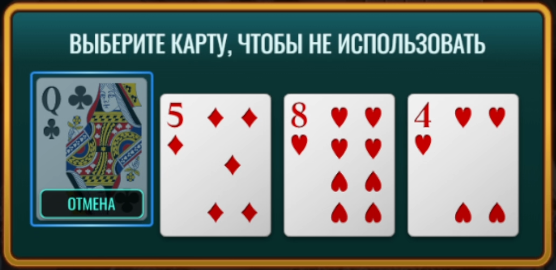 Каждому игроку изначально раздаются четыре карты, и он выбирает одну карту, которую нельзя использовать, и одну карту, которую нужно открыть.