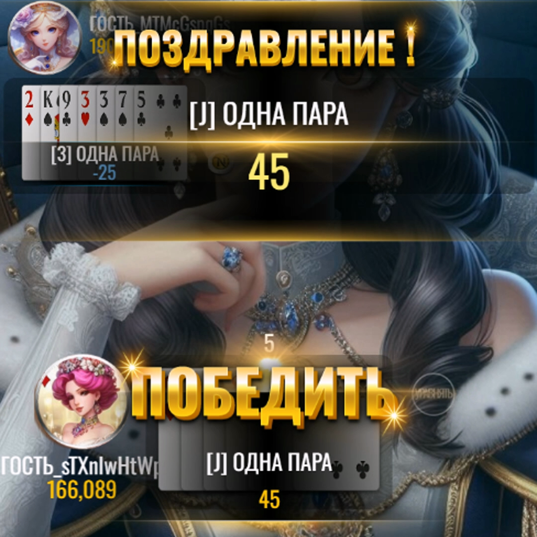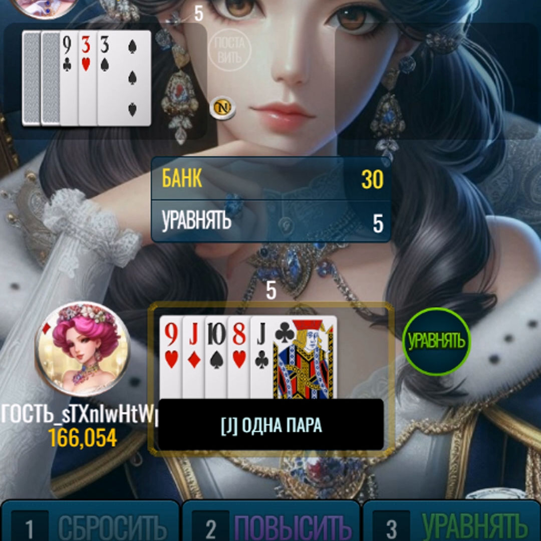 ОДНА ПАРА : Из 5 карт 2 карты имеют одинаковый номер. (J, Одна пара)
